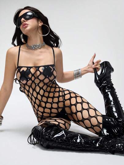 ROMWE Avant بوديسوت حريمي مجسمة مزينة بالراينستون ذات فتحات مثيرة، مناسبة للكرنفالات والمهرجانات الموسيقية