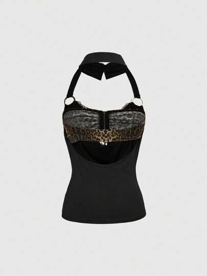 ROMWE J-Fashion ملابس علوية نسائية بدون أكمام مزخرفة بجلد الفهد وعنق متدلٍ، رائعة لموضة Y2K واسلوب هاراجوكو