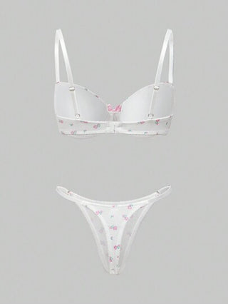 ROMWE Kawaii طقم ملابس داخلية للنساء تشمل صدرية بحمالات وسروال من طراز "هيميكاجي" بنمط الوردة الرومانسي والفراشة، لمنظر طازج
