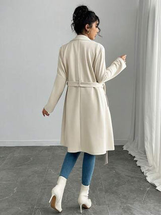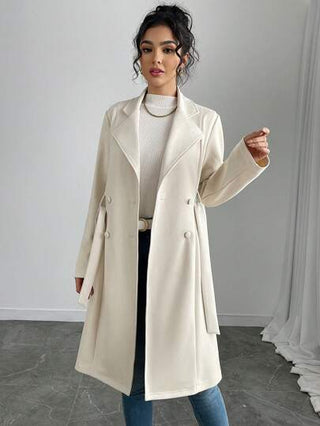 RosyDaze معطف نسائي من المخمل الصناعي أحادي اللون مزدوج الصدر وجيوب عادي