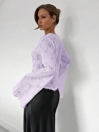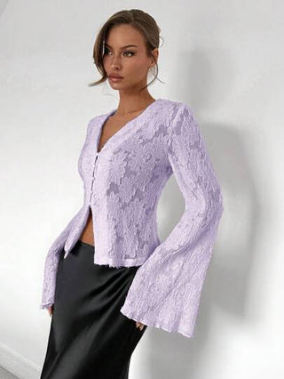 Roylia قميص طويل الأكمام أنيق بأزرار أمامية مزين بالأكمام الدانتيل