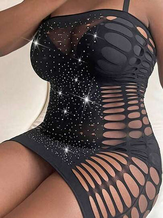 لانجيري حريمي فستان بدلة داخلية للسيدات مطرز بالراين والشبك الشفاف الحريري المثير، فستان جسماني محكم للسهرات الليلية