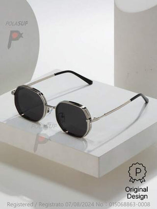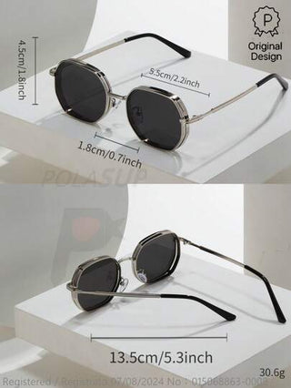 015068863-0009-SX2358 1 قطعة نظارات شمسية معدنية للرجال بتصميم هندسي أنيق، أسلوب شارع راقي، مناسبة للارتداء داخل وخارج المنزل، طوال العام، إطار سميك مع تصميم فتحات تهوية، تأتي مع علبة نظارات جلد اصطناعي (PU) أو علبة ورقية (عشوائية)