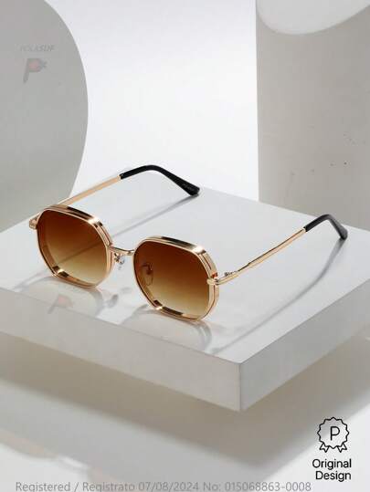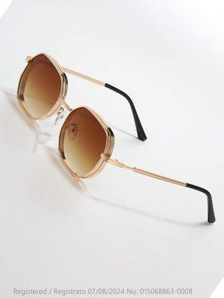 015068863-0009-SX2358 قطعة واحدة من النظارات المعدنية الهندسية الرجالية/النسائية ، ذات طراز شارع عصري للاستخدام الداخلي/الخارجي باللون الأسود والذهبي والفضي والبني ، مناسبة لجميع المواسم ، إطار سميك مع تصميم فتحات التهوية ، تأتي مع جراب من الجلد أو الورق