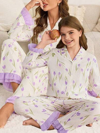 مجموعة بيجامة كاجوال مريحة من قطعتين تتكون من بنطلون طويل وقميص كم طويل بطبعة زنبق أنيقة جديدة للنساء