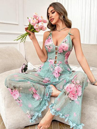 مجموعة بيجامة من سترة عنق حروري والبناطيل الحريرية ذات النقشات الجاكارد