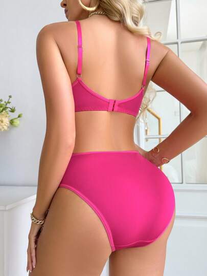 مجموعة ملابس داخلية للنساء مكونة من قطعتين - صدرية وسروال، مع وسادات وأسلاك معززة ودانتيل متباين