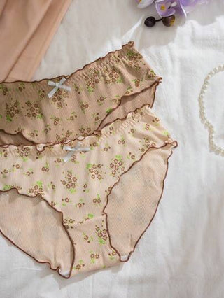 5 قطع سروال داخلي مجموعة من القصير المطرز بأزهار رقيقة بتصميم كشكشة