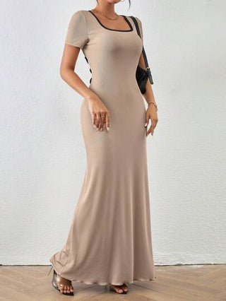 Clasi فستان أنيق قصير طية الخصر للنساء ذات لون أحادي وياقة مربعة، فستان ماكسي للنساء في فصل الصيف، طراز بوهيمي/مهرجاني طويل