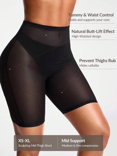 Shape ملابس تصميم شكل نسائية بلون سادة وخصر عالي مع نسيج شبكي شفاف