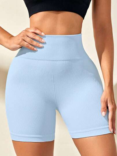 Sovereign Charm شورت نسائي أحادي اللون ذو خصر عالٍ للياقة البدنية والتمارين الرياضية، قصير رياضي، شورت جيم، شورت بايكر