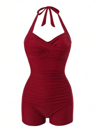 Swim بدلة سباحة قطعة واحدة من نوع عطاء الرقبة قابلة للربط، لون أحادي، اطلالة عطلة على الشاطئ، للنساء، موسم الصيف