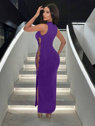 SXY فستان مثير ذو فتحة جانبية بقصة الصليب المجوفة