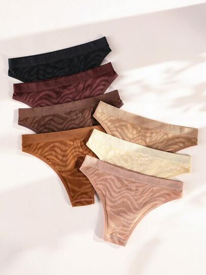 Shein Underwear&Sleepwear Basics سروال داخلي سلس مخطط شكل حمار وحشي 7 قطع