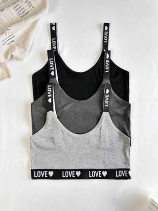 Shein Underwear&Sleepwear Basics 3 قطع / طقم للنساء عبارة بحرف ربطة قابلة للتمدد للصدر