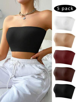 Shein Underwear&Sleepwear Maternity 5قطع/طقم خصر ملابس علوية أنبوبي بدون خياطة مرضعة حمالات بدون سلك
