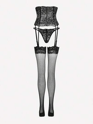 لانجيري حريمي Classic Sexy سروال داخلي ثونغ دانتيل زهري مع ربطة ساق مع زوج واحد