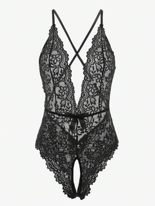 لانجيري حريمي Classic Sexy بوديسوت داخلية تيدي مفتوحة الأعضاء مع تطريز زهري وحافة مموجة