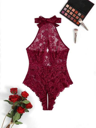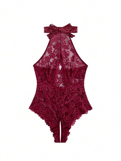 لانجيري حريمي Classic Sexy بدلة داخلية ذات تريم مدبب بالدانتيل الزهري دون فتحة بين الساقين