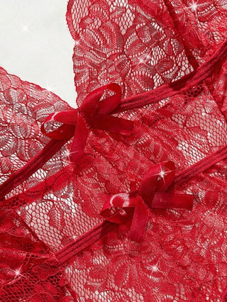 لانجيري حريمي ملابس داخلية بدلة تيدي جسم مفتوح بالرقبة بتطريز الدانتيل
