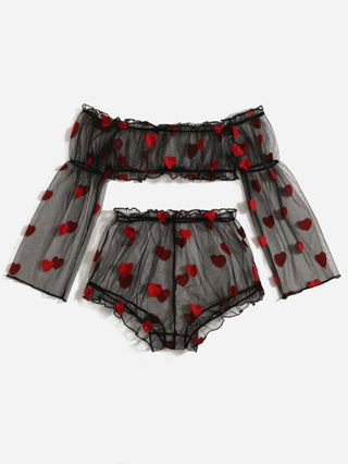 Classic Sexy طقم ملابس داخلية مطرز بقلب شبكة