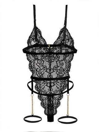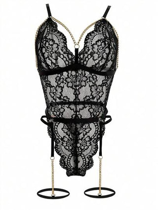 لانجيري حريمي بوديسوت تيدي مع سلسلة غارتر بشريط زهور متشابك، وزوج من أقراط الساق، ملابس داخلية