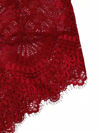 لانجيري حريمي Classic Sexy بدلة داخلية ذات ياقة عميقة بزخرفة الورود والشُرَّاك