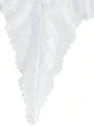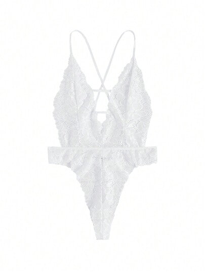 لانجيري حريمي Classic Sexy بدلة داخلية تيدي بتصميم ظهر مكشوف ذو رقبة عميقة بتطريز زهري دانتيلي مموج
