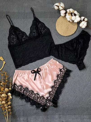 طقم ملابس داخلية دانتيل زهري 3 قطع