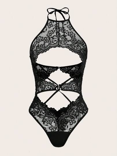 لانجيري حريمي SpicyHot بدسويت تيدي دانتيل زهري قص مجوف أشرطة متقاطعة