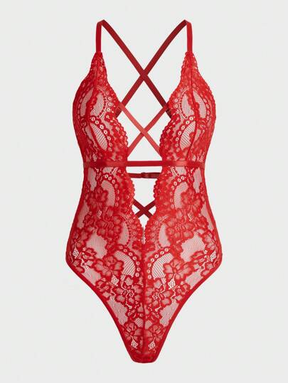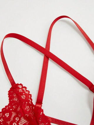 لانجيري حريمي Classic Sexy بيكيني مخرم بطراز الأزهار مع فتحات، ملابس داخلية بحزام متقاطع للجسم بقطعة واحدة، ملابس داخلية