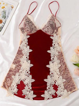 لانجيري حريمي فستان مصغر مثير دانتيل فيلفيت مطاطي واحد للنساء