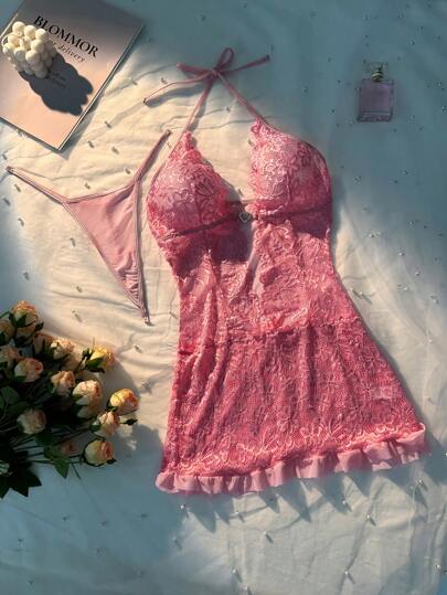 لانجيري حريمي Classic Sexy فستان ملابس داخلية نسائي أنيق بلون أحادي وتصميم من الدانتيل الجذاب