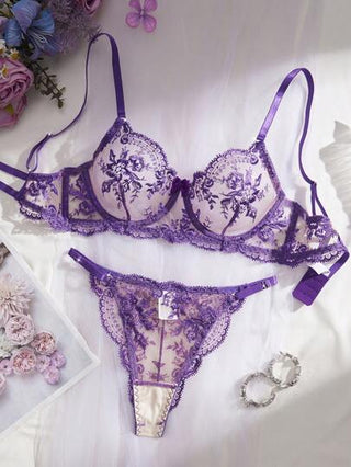 طقم ملابس داخلية نسائية جذابة، ملابس داخلية من الشبك مطرزة بطرزة زهرية، مناسبة لعيد الحب، عيد الميلاد، الشهر العسل