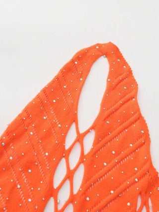 لانجيري حريمي رومبير حريمي ذو رقبة العنق البرتقالي جريء، منقوب ، مزين بالراين ستون ، ملابس داخلية شبكية