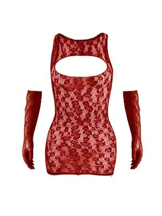 لانجيري حريمي مجموعة ملابس داخلية جذابة وشفافة للنساء، فستان لوبارد مفتوح بالشبكة مع قفازات لتناسب الجسم لحفلة أو موعد