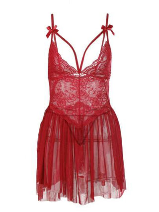 لانجيري حريمي طقم ملابس داخلية شفافة جذابة: فستان شفاف وسروال داخلي مرصع بطيّة دانتيل منفذة