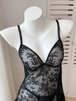 لانجيري حريمي الثوب النوم النسائي الرومانسي الرقيق الشفاف ذو الكشكشة والدانتيل الزهري الجذاب