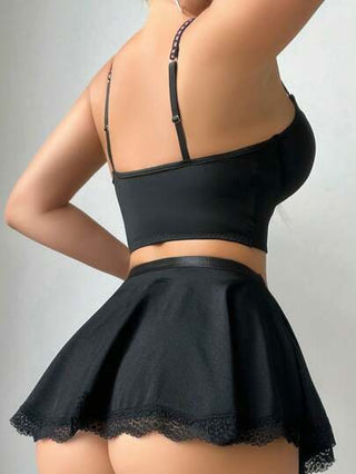 5 قطعة / مجموعة ملابس داخلية جذابة: ملابس علوية خزان نحيفة ، سروال داخلي سكسي ، تنورة مزودة بعروات ، 2 قطعة من الجوارب ، أزياء للحفلات