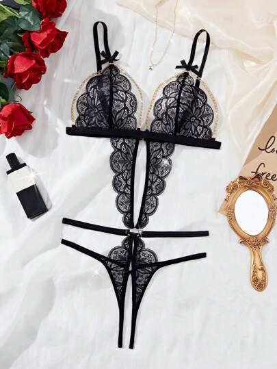 لانجيري حريمي Classic Sexy قطعة واحدة للنساء طقم ملابس داخلية بيكيني مثير من الدانتيل