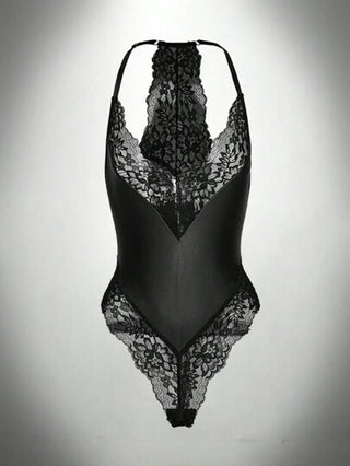 لانجيري حريمي AltCore جمبسوت نسائية حريرية متطايرة لونها أحادي الحشو بالدانتيل بتصميم الظهر المكشوف والرقبة الحلقية الجذابة