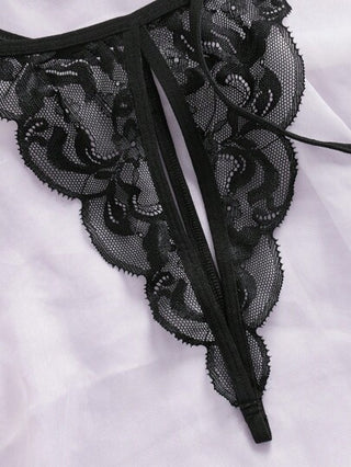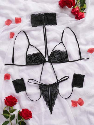 طقم ملابس داخلية نسائية جذاب ومغري بتصميم مفرغ
