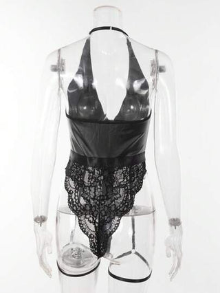 لانجيري حريمي 1 قطعة مجموعة ملابس داخلية نسائي مثيرة من قماش الدانتيل والجلد المرقّع شفاف بسيور رفيعة وياقة عميقة على شكل تديبي، مناسبة للمنزل أو الحفلات، ملابس داخلية مثيرة (شكل السوستة مرسل بشكل عشوائي)