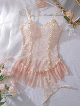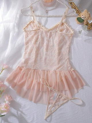 لانجيري حريمي PetitDoll قطعتين زي نوم للنساء مكون من فستان وسربال من الشيفون والدانتيل المشغول بطبقات متراصة - فستان نوم + سربال