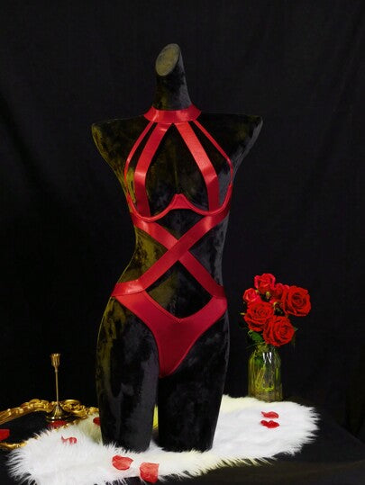 لانجيري حريمي جمبسوت نسائية جريئة (مع سنام داخلي، جزء مفتوح، شرائط ، إصدار عيد الحب)