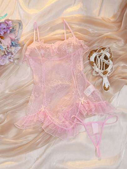 لانجيري حريمي DelicateAllure فستان نوم نسائي رقيق وأنيق، 2 قطعة منه من دانتيل بتصميم نسائي مثير والحافة ملفوفة
