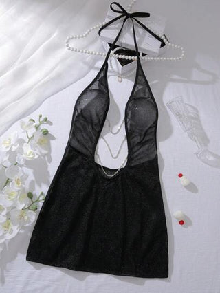 لانجيري حريمي MidnightGlam ثوب نوم نسائي من قماش الساتان ذو رقبة عميقة على شكل حرف V وظهر مكشوف، مزين بالترتر والرينستون والسلسلة