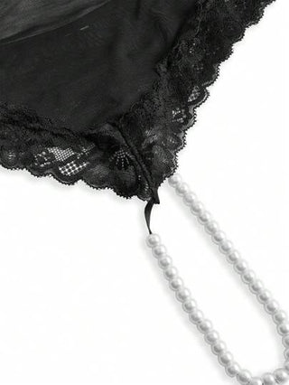 لانجيري حريمي PinupGlam جمبسوت قصيرة نسائية شفافة مصنوعة من الدانتيل والشبك، مزخرفة باللؤلؤ وبتصميم ظهر مكشوف، طراز رجعي أنيق