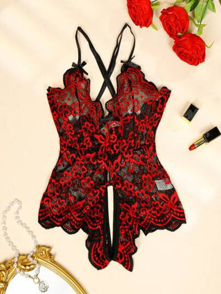 لانجيري حريمي قطعة واحدة من جمبسوت كلاسيكية باللون المتباين مع الشريط والعقدة، مفتوحة الظهر والخلف بتصميم مثير للجسم وعرض للجاذبية الأنثوية، صممت بفتحة مفتوحة بجسد الدمية الداخلية