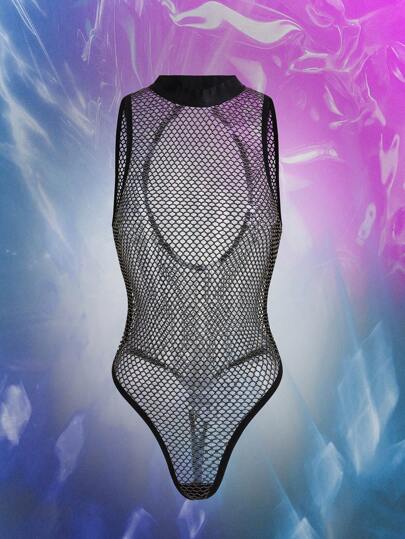 لانجيري حريمي AltCore جمبسوت كاملة نسائية جذابة شفافة بلا أكمام مناسبة لمهرجانات الموسيقى